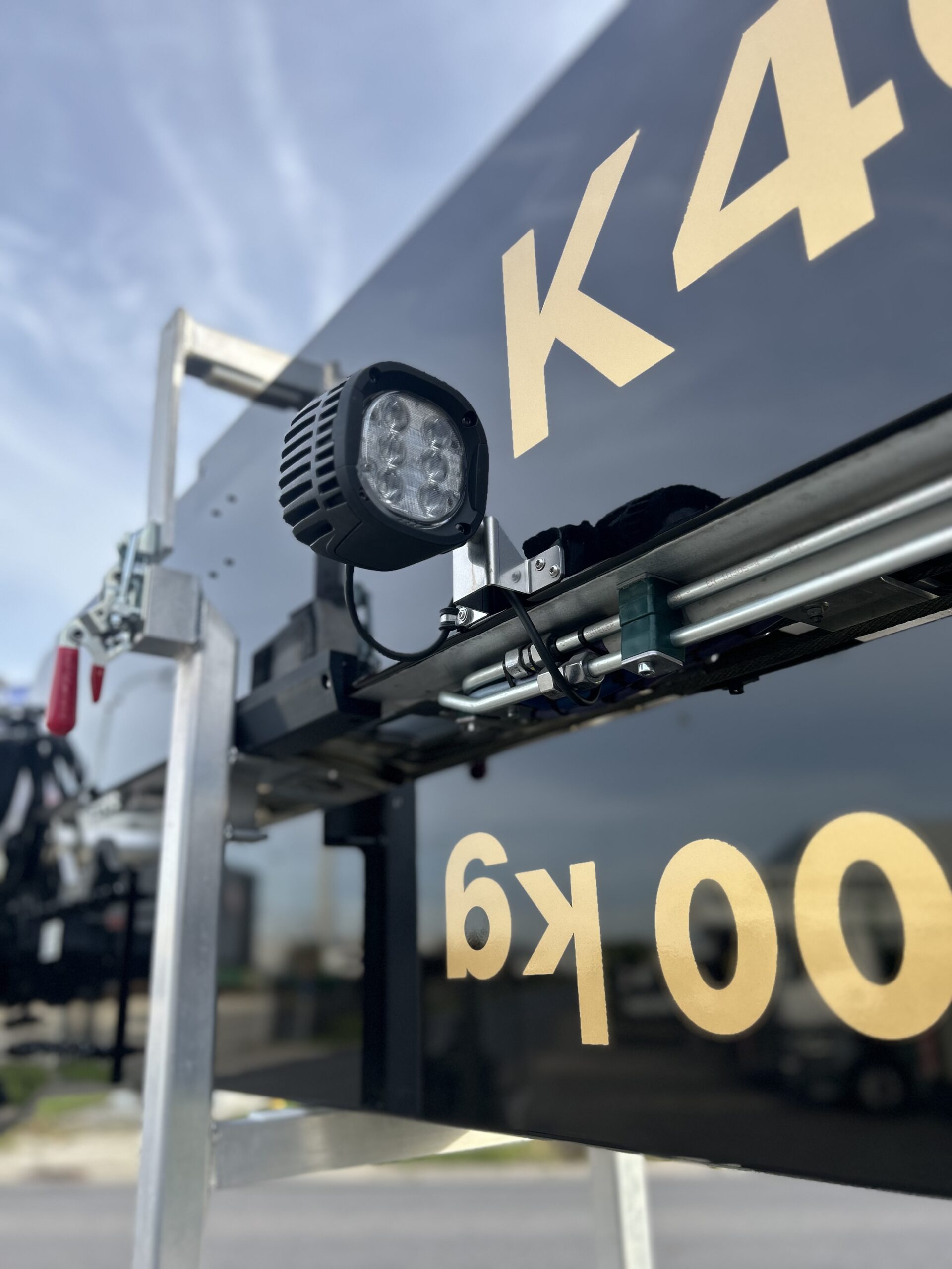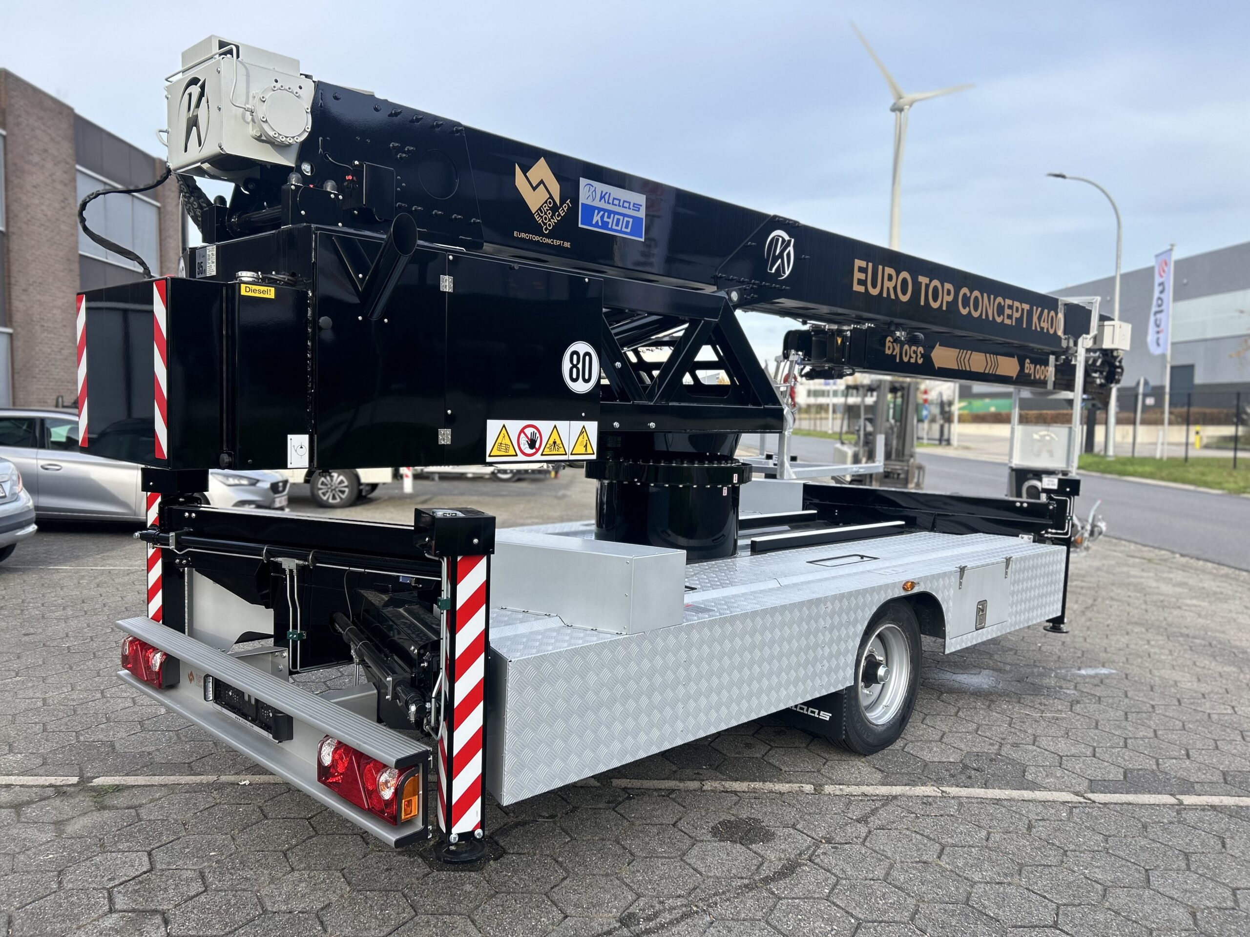 Avec une capacité de levage maximale de 1600 kg, la K400 est la grue sur remorque Klaas la plus robuste, sa hauteur sous crochet étant supérieure à 34 m. Équipée d’une double pointe télescopique hydraulique repliable, elle crée une valeur ajoutée significative pour les travaux quotidiens dans les zones urbaines, sur les chantiers étroits et dans les travaux d’assemblage. Les deux premiers éléments de la pointe rabattable peuvent être déployés et rétractés à l’aide d’une télécommande radio, même lorsque la grue est utilisée sur une plate-forme. Cela permet à la grue sur remorque d’être montée même dans des espaces restreints et ouvre de nouveaux domaines d’application pour le travail avec ou sans plate-forme.